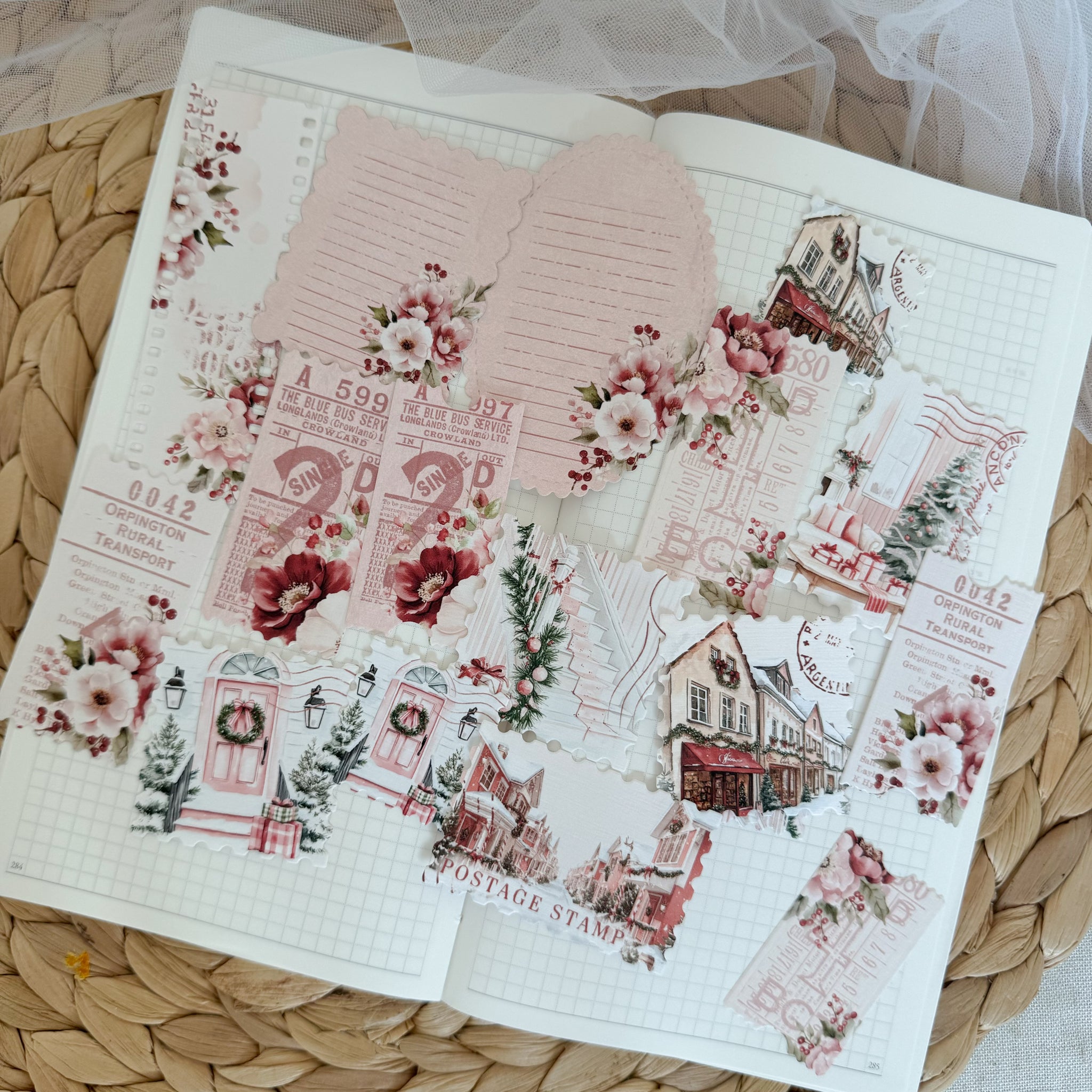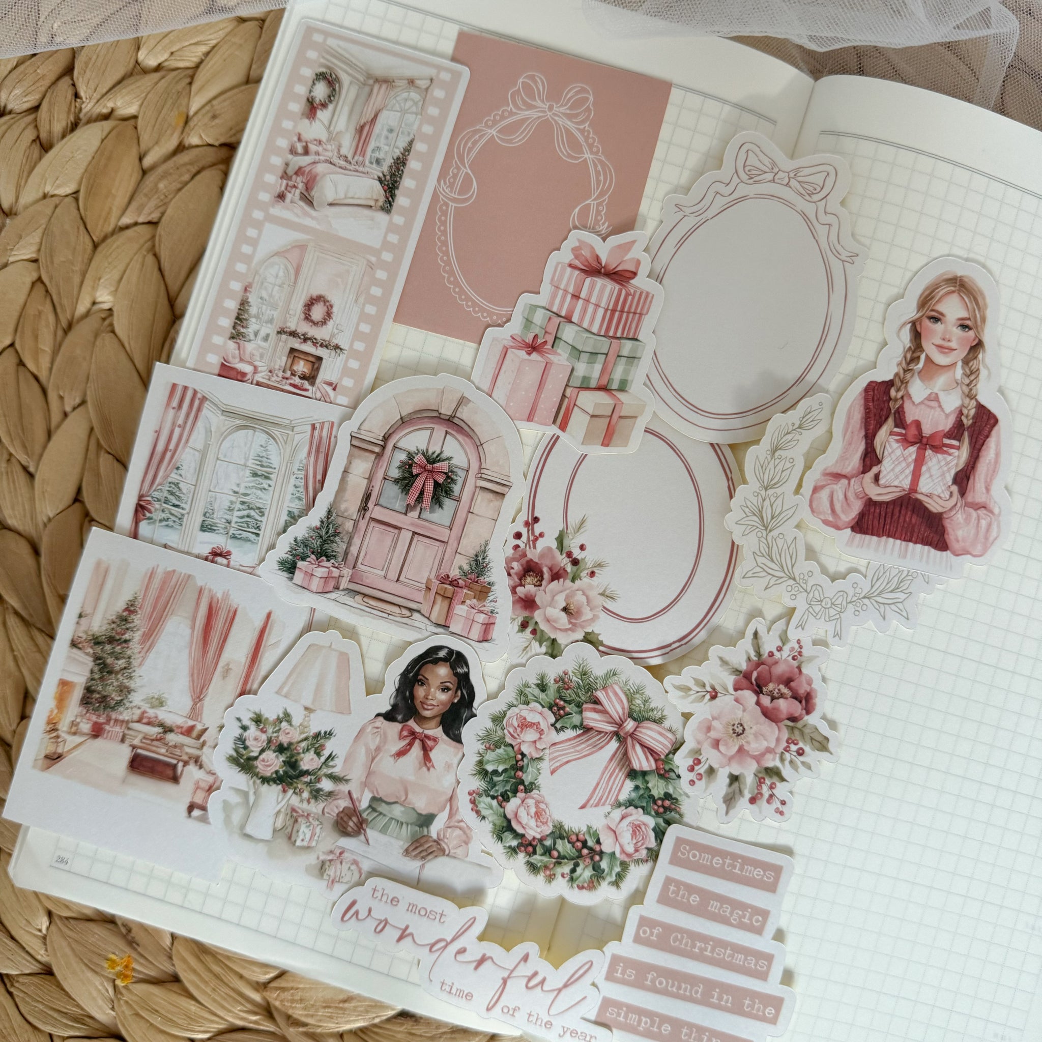 holiday embrace ephemera and sticker die cut pocket, 40+ pieces