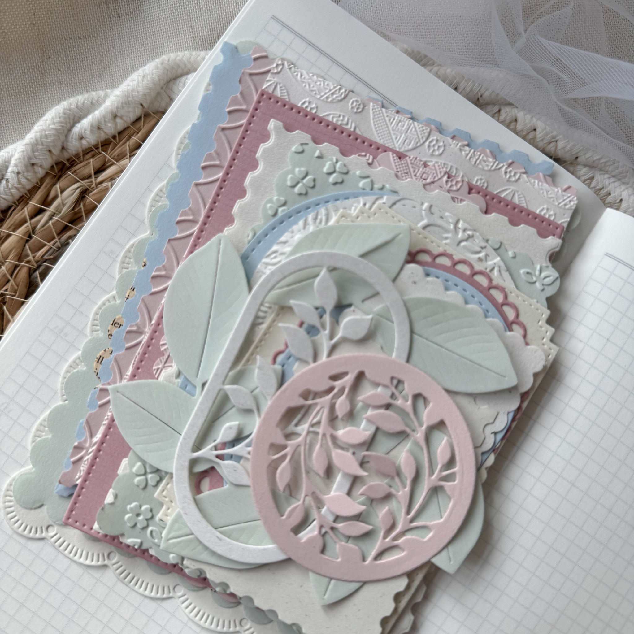pastel easter & spring paper set, embossed paper