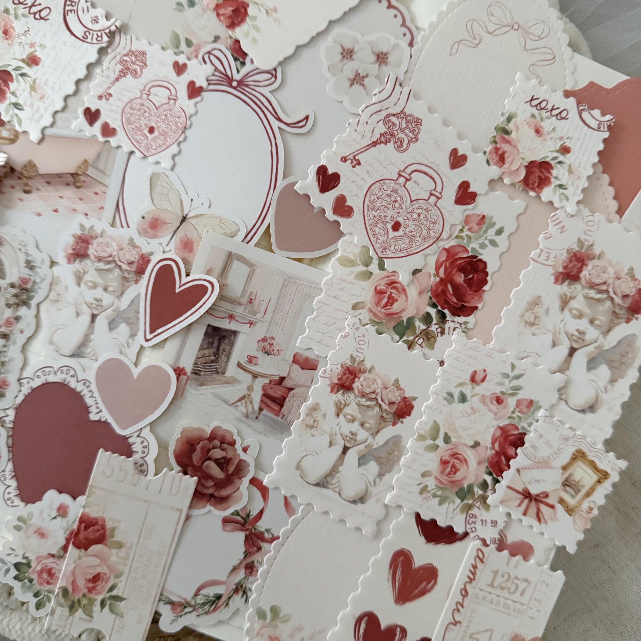valentines day ephemera and sticker die cut pocket, 35+ pieces