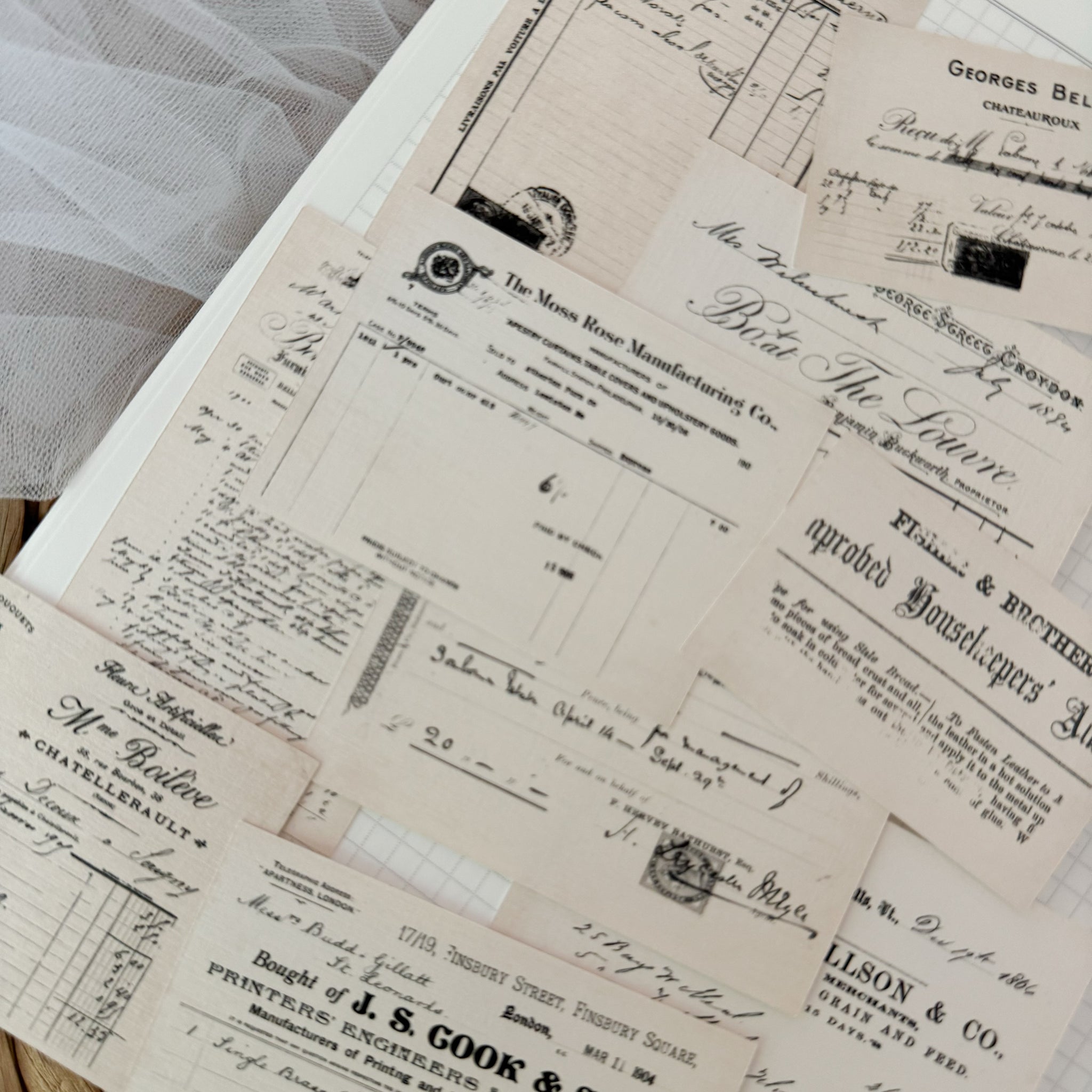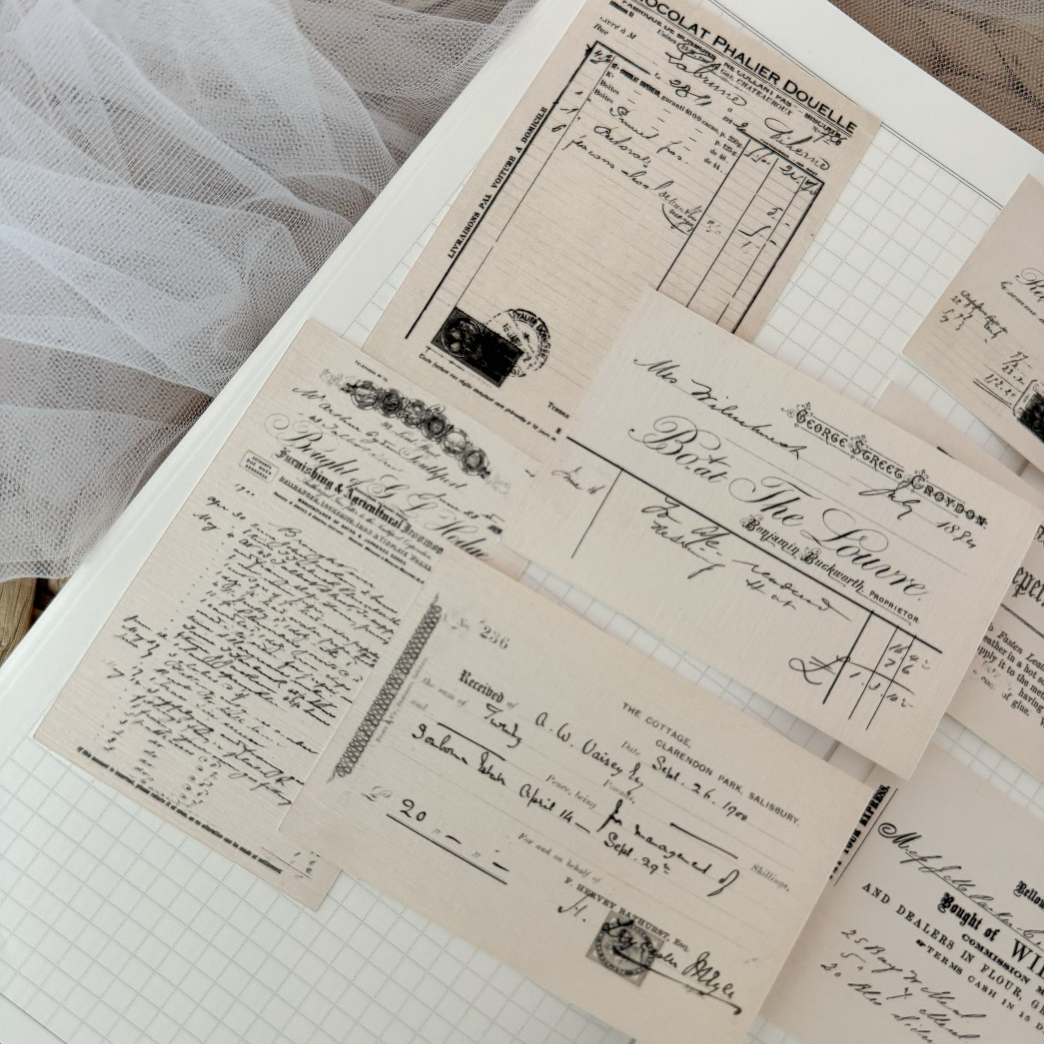 11 die cut ephemera cards printed on lightweight 185g linen card stock