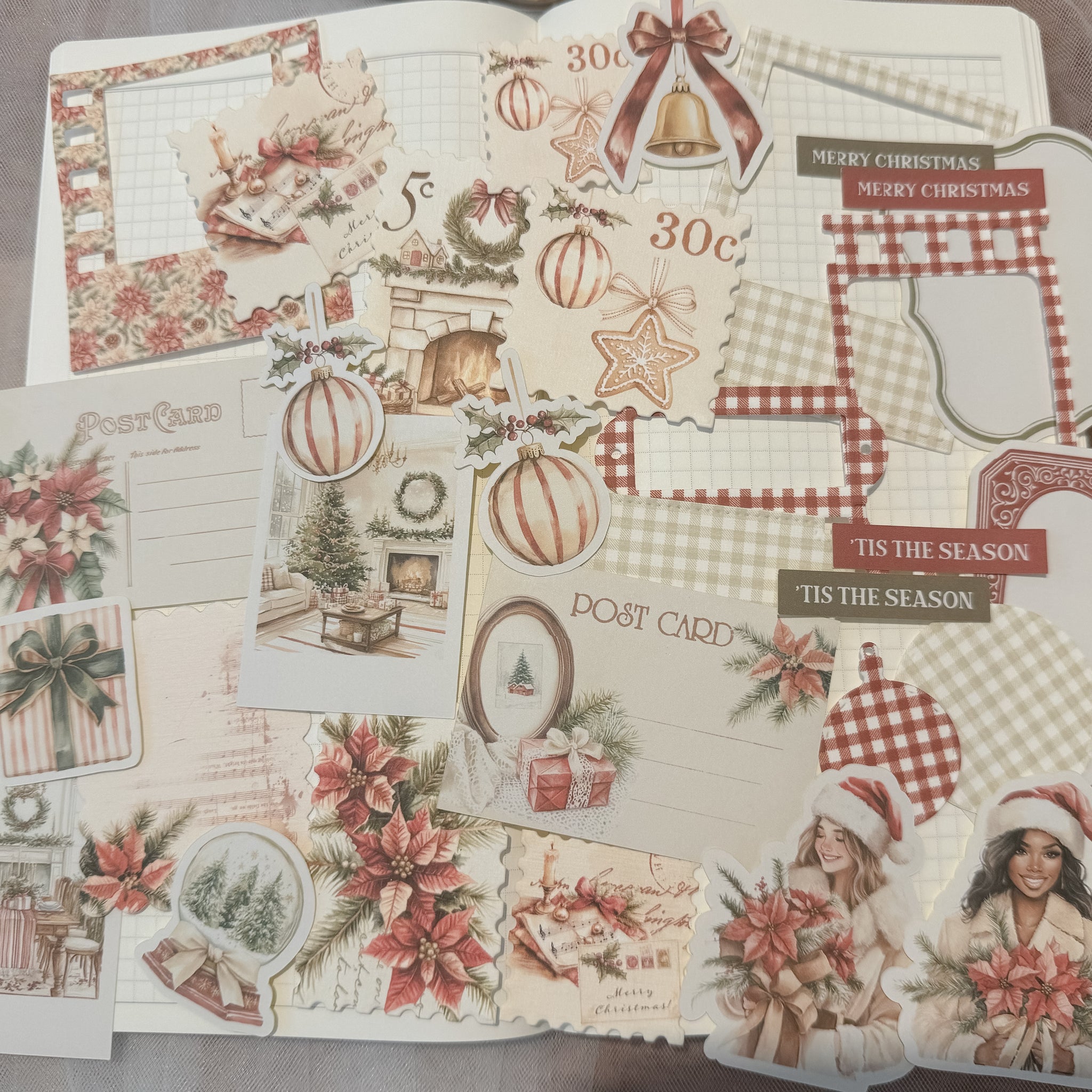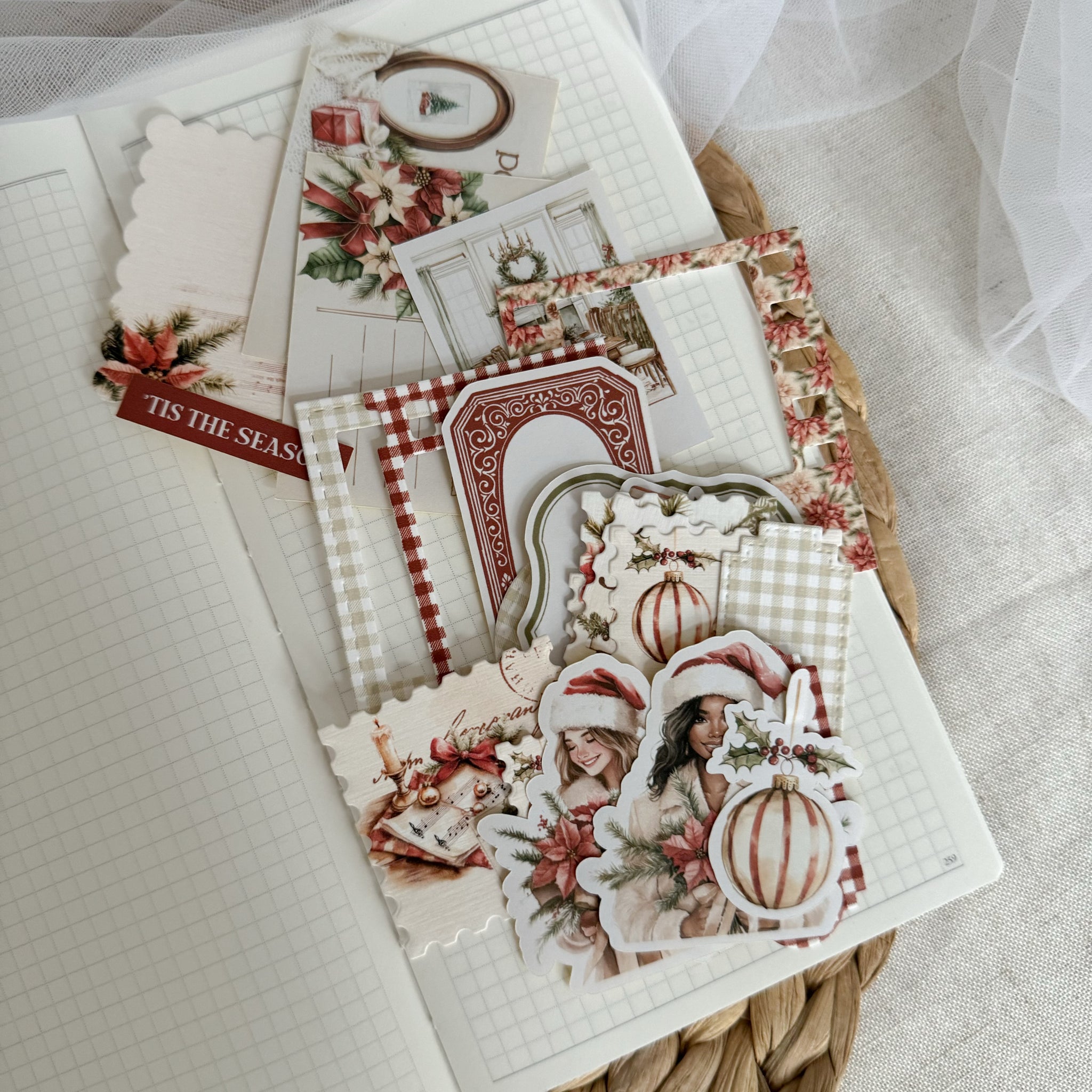 warm holidays ephemera and sticker die cut pocket, 25+ pieces